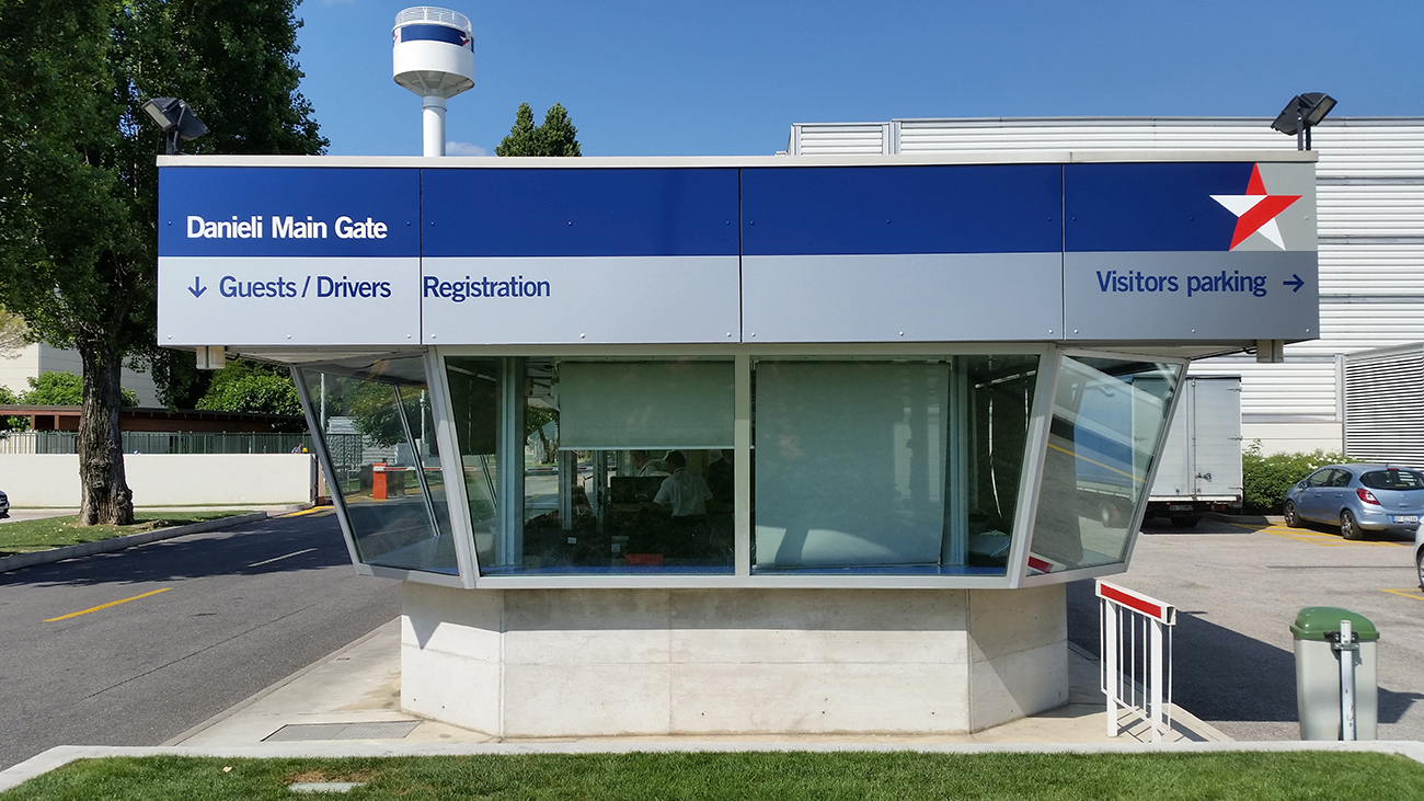 Allestimento della portineria presso la sede della Danieli di Buttrio (Udine)