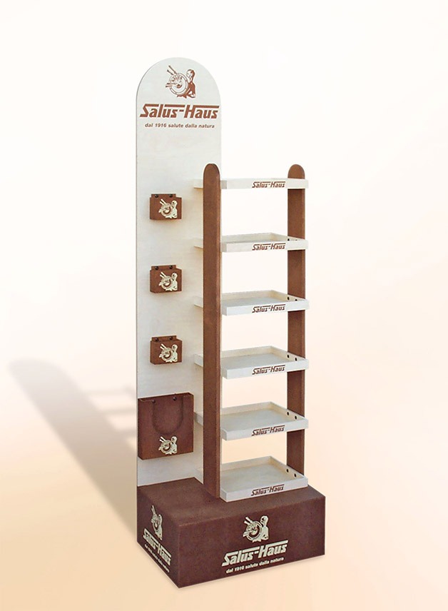 Espositore da terra con ruote, in multistrati di betulla.